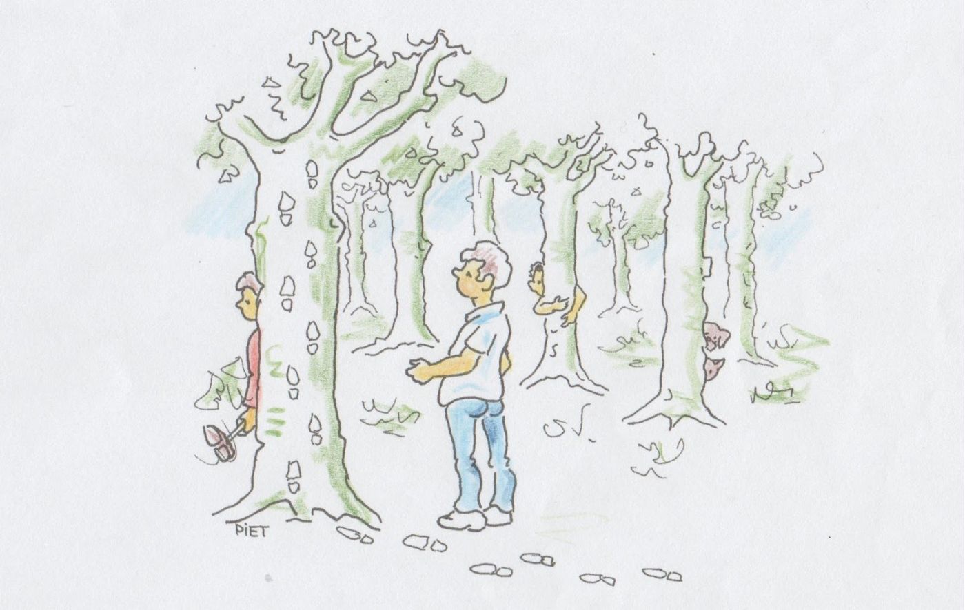 Wie hig ’t in z’n kijnderjaore nie gespuld? Wie d’n buut moog hebbe, moes mee z’n gezicht nòr de muur aftelle. Dè ging dan zo: “Eên, twee, drie, vier, vijf, zes, zeuve, aacht, neege, tién – wie nie weg ies ies gezién, ik koom!” D’n buuter, zalle we mer zegge, draaide z’n èège dan om en wie hij dan zaag, wier afgebuut. D’n buuter moes tòch van z’n plek aaf om de uitkruipers te ontdekke. Es-ie’r dan eêne zaag, moes-ie al wè-tie kon renne om ‘m af te tikke, en dan riép-tie: “Buut!” Es d’n uitkruiper d’r irder was, dan riép-tie: “Buut vrij!” Die moog dan de vòlgenden buut doén. D’n buuter moes wel alle aander uitkruipers afbuute, totdè hij of zij ze ammel gevonde hai. Ze hebbe ‘ne keêr erg lang nòr eêne gezòcht: die waar kwaod nòr huis gegaon omdè-tie d’n buut nie moog zijn. Of ’t waor ies, wit ik nie, mer nòr ’t schijnt lôpt-ie nou in’t bejaordehuis nòg te zuúke.