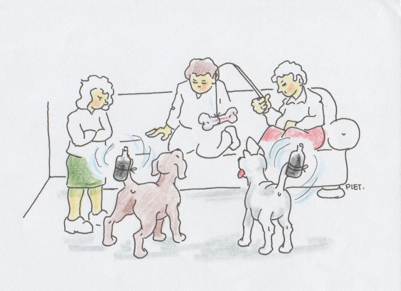 Veul aauwere weeten ‘t nòg wel: ‘n fleske mee wòtter mee stukskes longendròp d’r in. Dè moeste dan in ‘n donker hoekske zette en es ‘t lang genoeg hai gestaon, konde’t gebruike. Nao flink schudde om ‘t te laote schuime was ‘t zuigklaor – en dan mer zuige. Veul smaok was-t’r nie aon, mer we han nie veul aanders, en dan ies ‘n kijnd al gaauw blij.