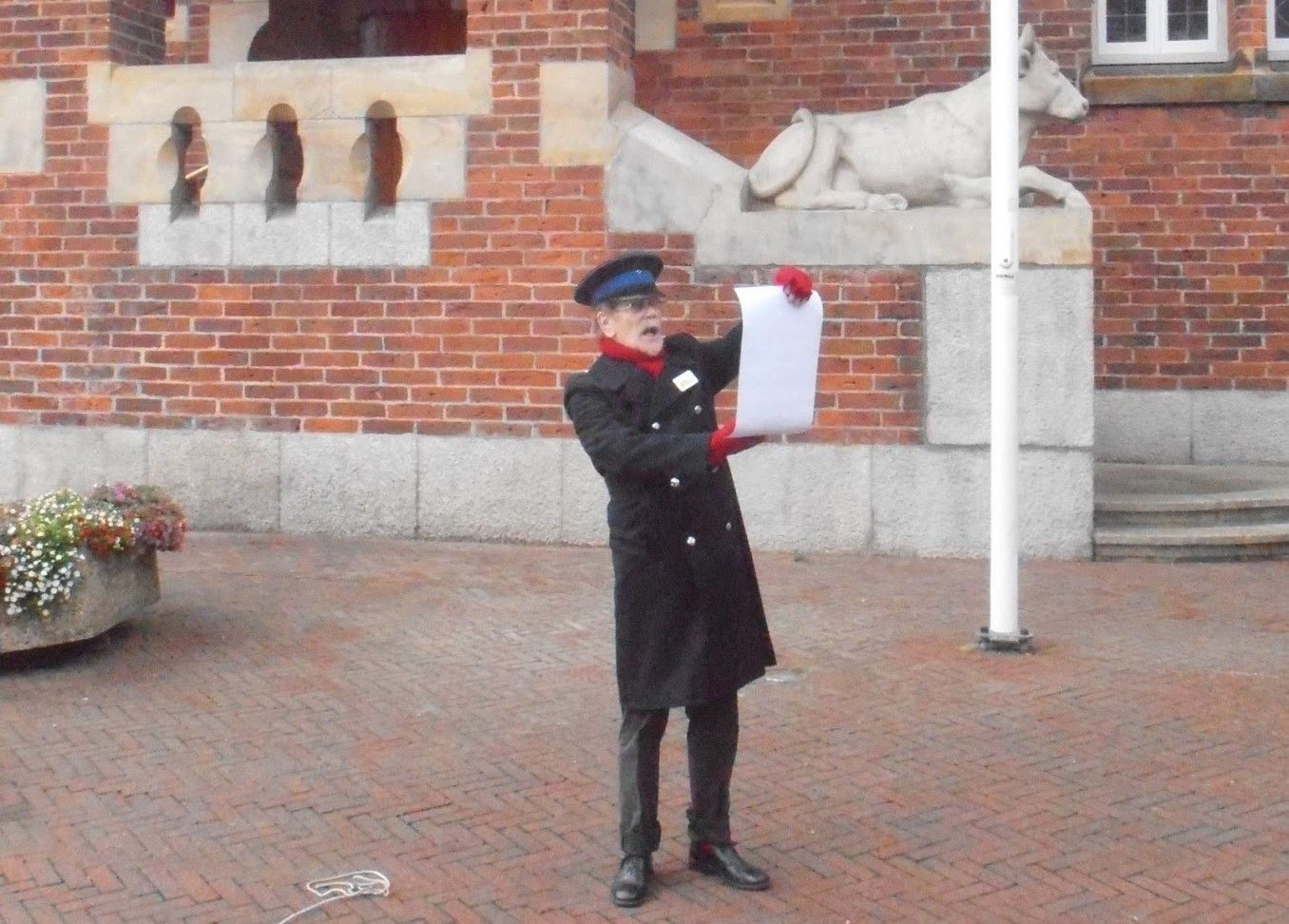 Stadsomroeper Harry Hens in actie tijdens Open Monumentendag 2017
